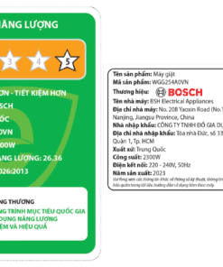 Máy giặt Bosch cửa ngang WGG254A0VN sử dụng động cơ EcoSilence Drive giúp máy hoạt động nhẹ nhàng, êm ái. Đồng thời, động cơ không chổi than, máy giặt giúp tiết kiệm năng lượng, giảm tiếng ồn do ma sát một cách tối ưu, đồng thời vận hành êm ái với tuổi thọ cao.Máy giặt Bosch 10kg WGG254A0VN đạt nhãn hiệu năng lượng 5 sao với hiệu suất sử dụng điện 26.36 Wh/kg.