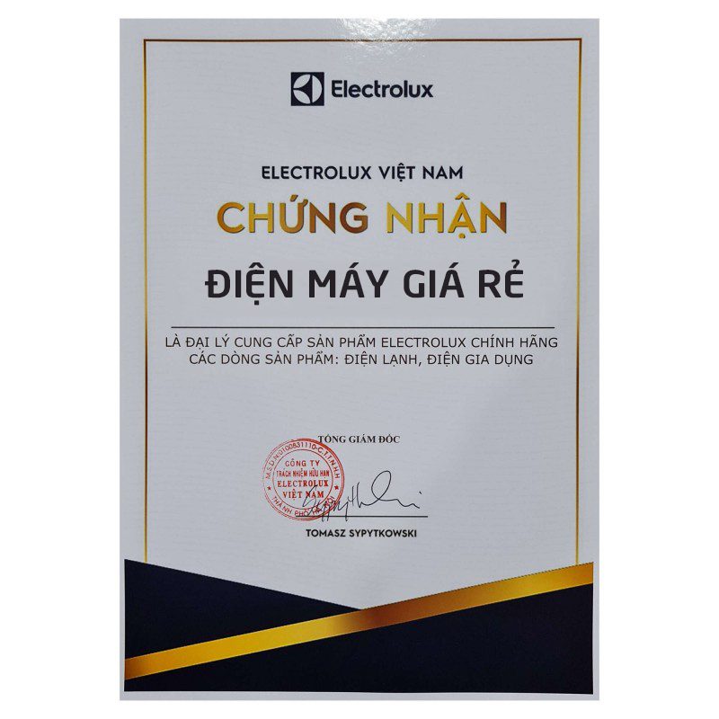 3. Chứng nhận là nhà phân phối độc quyền của Electrolux