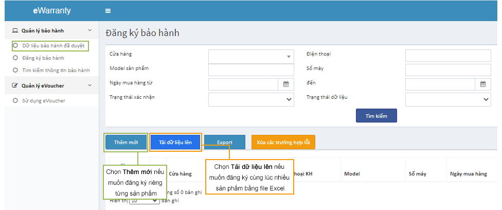 Cách này chỉ áp dụng cho đại lý và cửa hàng đã được hãng Panasonic cấp quyền truy cập vào hệ thống Đăng ký Bảo hành điện tử Panasonic eWarranty.