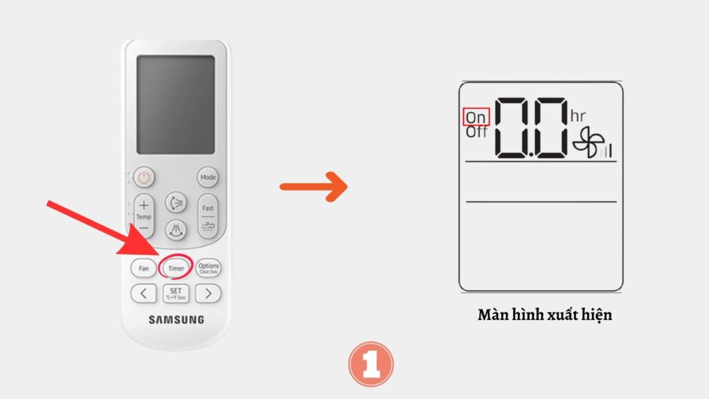 - Bước 1: Khi máy điều hoà đang tắt, nhấn nút “Timer” trên bộ điều khiển đến khi chữ “On”trên màn hình nhấp nháy.
