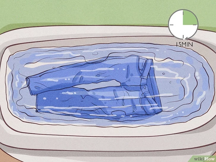 Cố gắng ngâm quần jean trong 10~15 phút hoặc cho đến khi nước nguội.