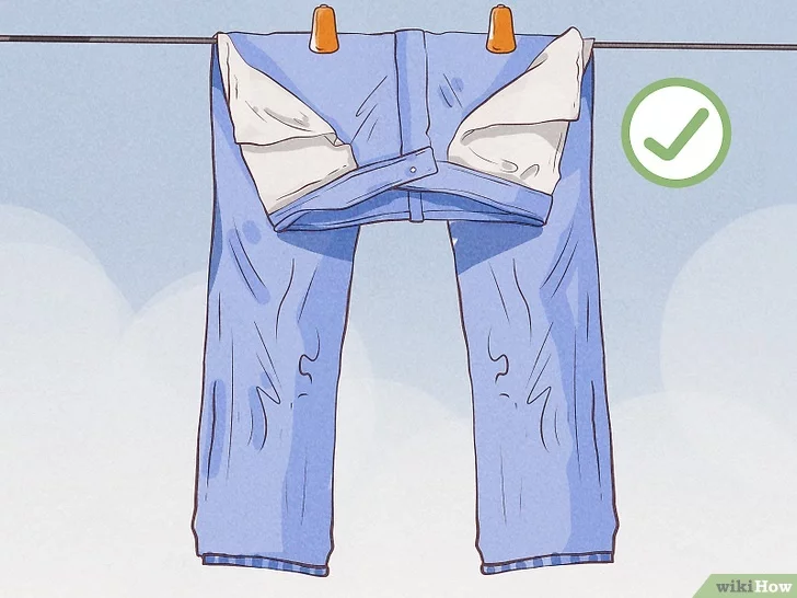 Lưu ý: Tránh cho quần jeans vào máy sấy. Sức nóng sẽ khiến quần áo của bạn bị co lại và hủy hoại mọi công sức của bạn.