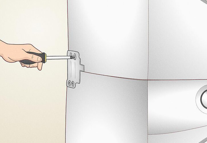 Sau khi máy sấy được đặt lên trên máy giặt, hãy để nó đúng vị trí. Mặt trước của máy giặt và máy sấy cần phải bằng phẳng với nhau. Mặt sau của máy sấy nên lùi xa hơn một chút so với mặt sau của chiếc máy giặt.