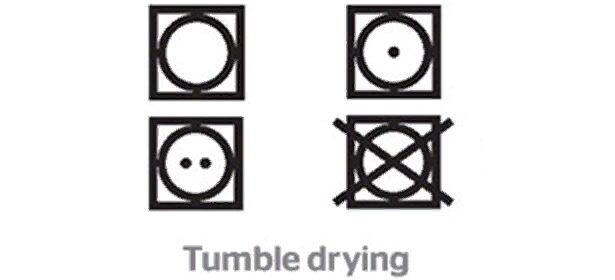 - Hình vuông, hình tròn có hai đường chéo xuyên qua – không thể sấy khô bằng máy sấy quần áo.
