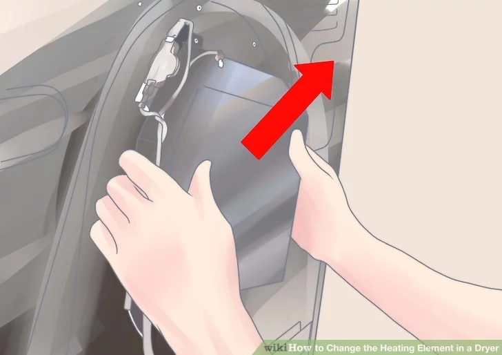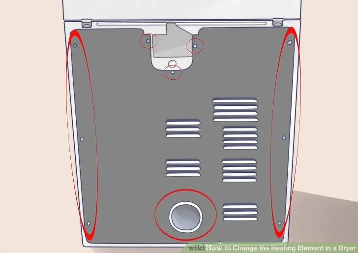 Ở phía bên phải mặt sau của máy sấy, bạn sẽ thấy một miếng kim loại dài (có thể là màu xám). Hộp sợi đốt nằm bên trong.