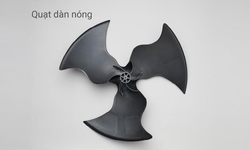Quạt dàn nóng được trang bị thiết kế mới làm tăng tối đa hiệu suất giải nhiệt cho dàn nóng với tiếng ồn thấpMô tơ quạt DC điều khiển quạt dàn nóng hoạt động với hiệu suất cao và tiết kiệm điện so với các dòng máy sử dụng động cơ AC