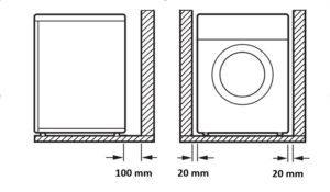 - Đặt máy sấy LG cách xa tường, khoảng hở tối thiểu 100mm để đạt hiệu quả sấy tốt hơn.