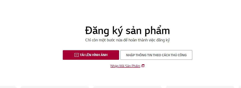 Bước 1: Truy cập vào link: https://www.lg.com/vn/tro-giup/register-product-gate và chọn tải ảnh lên hoặc nhập thông tin thủ công.