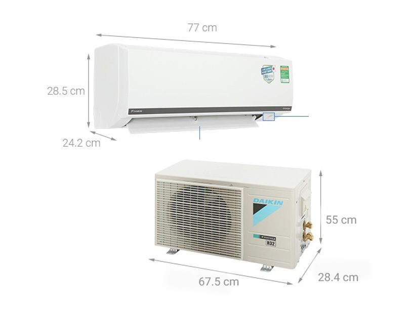 - Kích thước dàn lạnh: Dài 77 cm – Cao 28.5 cm – Dày 24.2 cm
