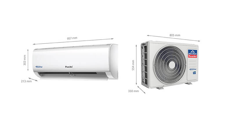 Kích thước cục nóng, cục lạnh điều hòa Funiki 18000