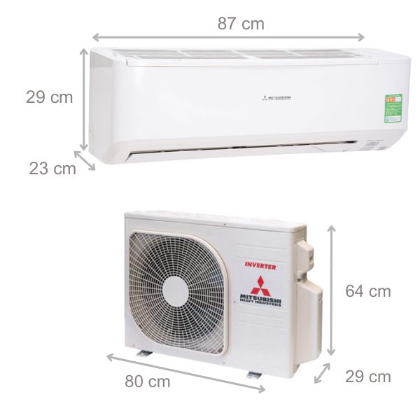 Bảng tổng hợp kích thước điều hòa 18000BTU Mitsubishi Heavy