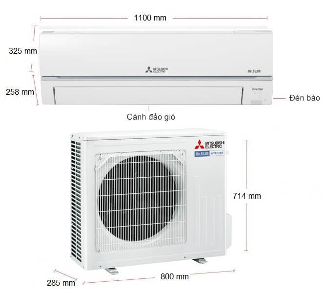 Bảng tổng hợp kích thước máy lạnh 2.5 hp Mitsubishi Electric