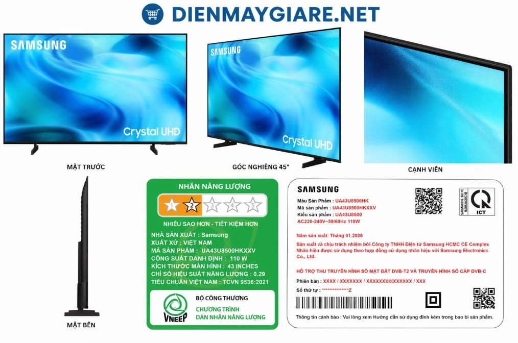 Sản phẩm: Smart Tivi Crystal UHD Samsung AI 4K 43 inch UA43U8500H
