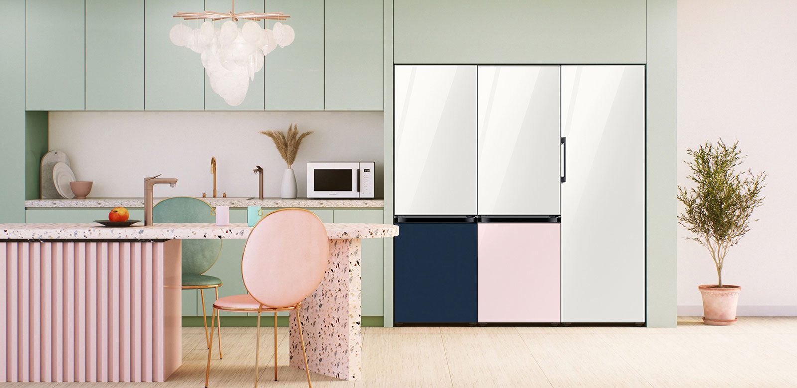 Samsung Bespoke ra mắt trước sự trầm trồ, thán phục của người tiêu dùng, là dòng sản phẩm lần đầu tiên cho phép kết hợp các model với nhau, mang đến trải nghiệm cực kỳ thú vị. Đặc biệt, một sản phẩm còn có thể có 2 màu (trắng, hồng và xanh navy…) với chất liệu mặt gương Glam Glass tinh tế, tôn lên vẻ đẹp hiện đại và sang trọng trong không gian bếp. Đặc biệt loại tủ này còn có thể lắp đặt âm tường để tiết kiệm không gian