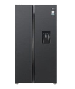 Tủ lạnh Electrolux Inverter 571 lít ESE6141A-BVN với thiết kế Side by Side hiện đại cùng gam màu đen huyền bí giúp không gian bếp của gia đình bạn thêm phần sang trọng, nổi bật. Bên cạnh đó, chất liệu cửa tủ được làm từ thép không gỉ có khả năng chống ăn mòn, chịu nhiệt độ cao khi sử dụng.